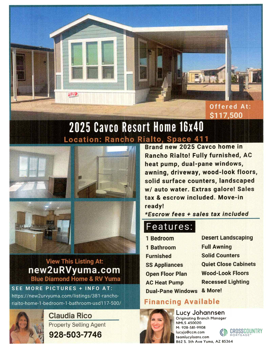 Please send email inquiry to: ranchorialto1park@outlook.com or call (928) 345-2147 during office hours (fall/winter season 9am-3pm)